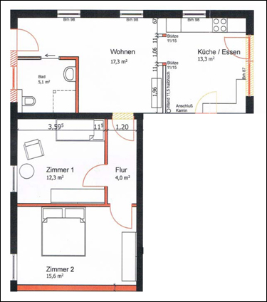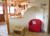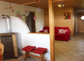 - Sie umfasst eine Küchenzeile mit Sitzecke und einem Schwedenofen, sowie eine gemütliche Sofasitzgruppe