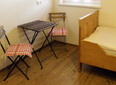 - Es gibt 2 Schlafzimmer, ein Badezimmer (ebenerdige Dusche, Waschbecken & WC)