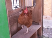 Die Gackerliesen wohnen in einem Mobilen Hühnerstall, damit sie frisches, leckeres Gras zum Fressen haben.